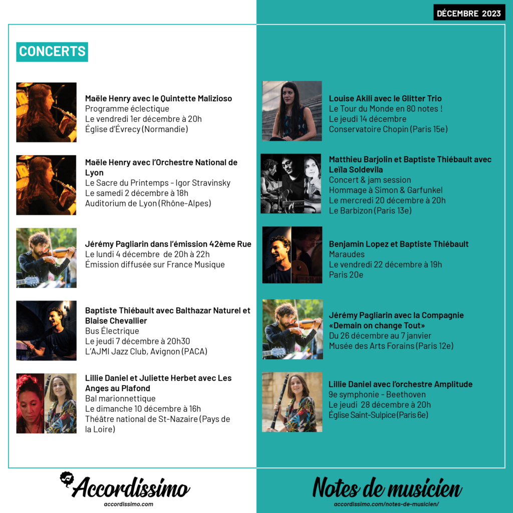 Voici quelques actualités de fin d’année des professeurs qui interviennent lors des séjours Accordissimo !